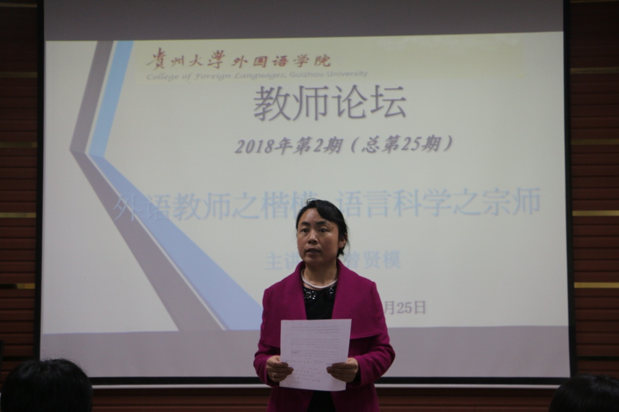 曾贤模副教授本次讲座的主题是“外语教师之楷模 语言科学之宗师——悼语言学巨匠韩礼德”。 韩礼德教授是世界语言学界的杰出代表和语言大师,同时也是两大主要语言学派之一的系统功能语言学的创始人。韩礼德教授在英国当地时间4月15日晚8时左右逝世,享年93岁,他的语言学理论对外语教学和语言科学方面都具有广泛而深远的影响。