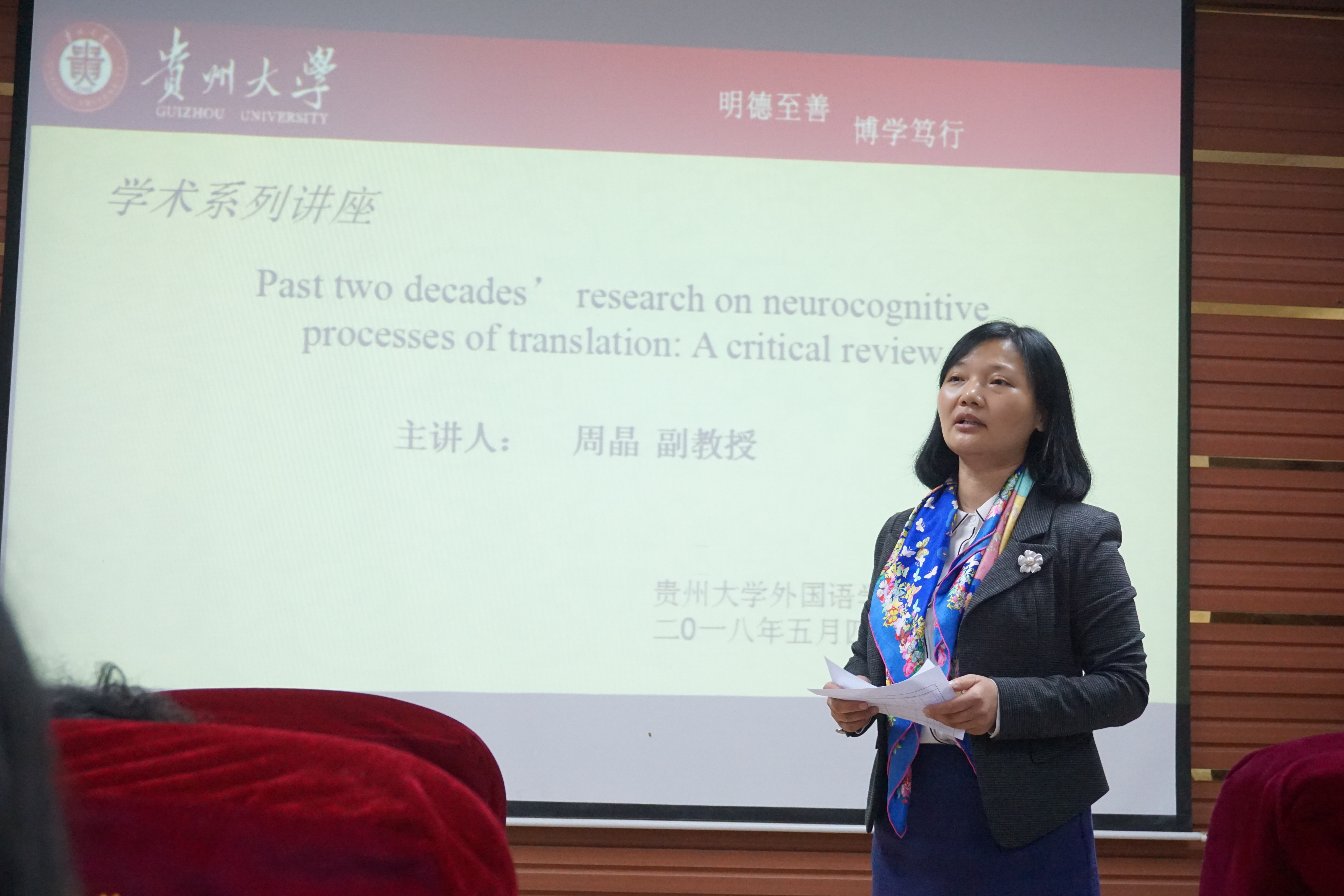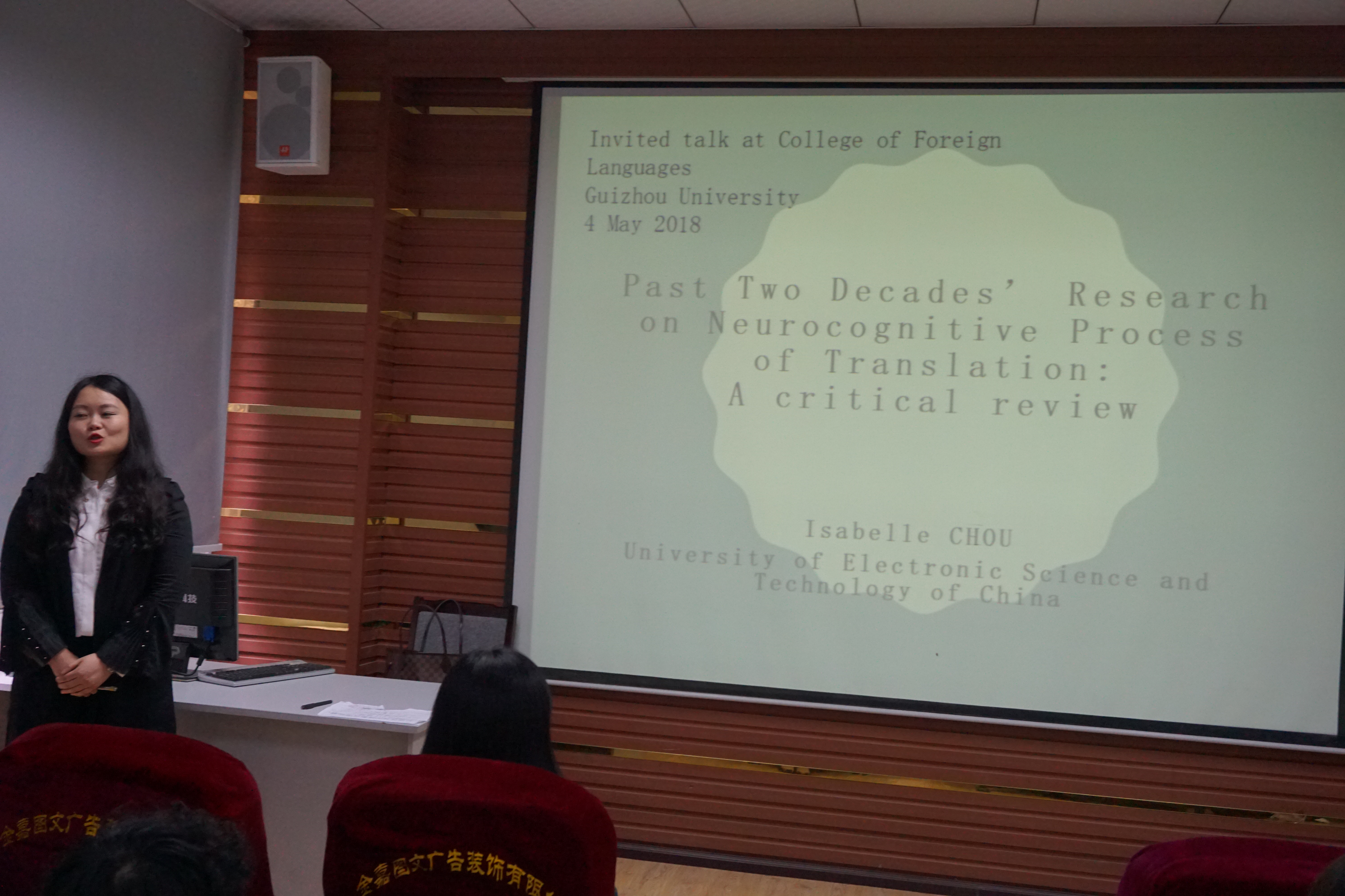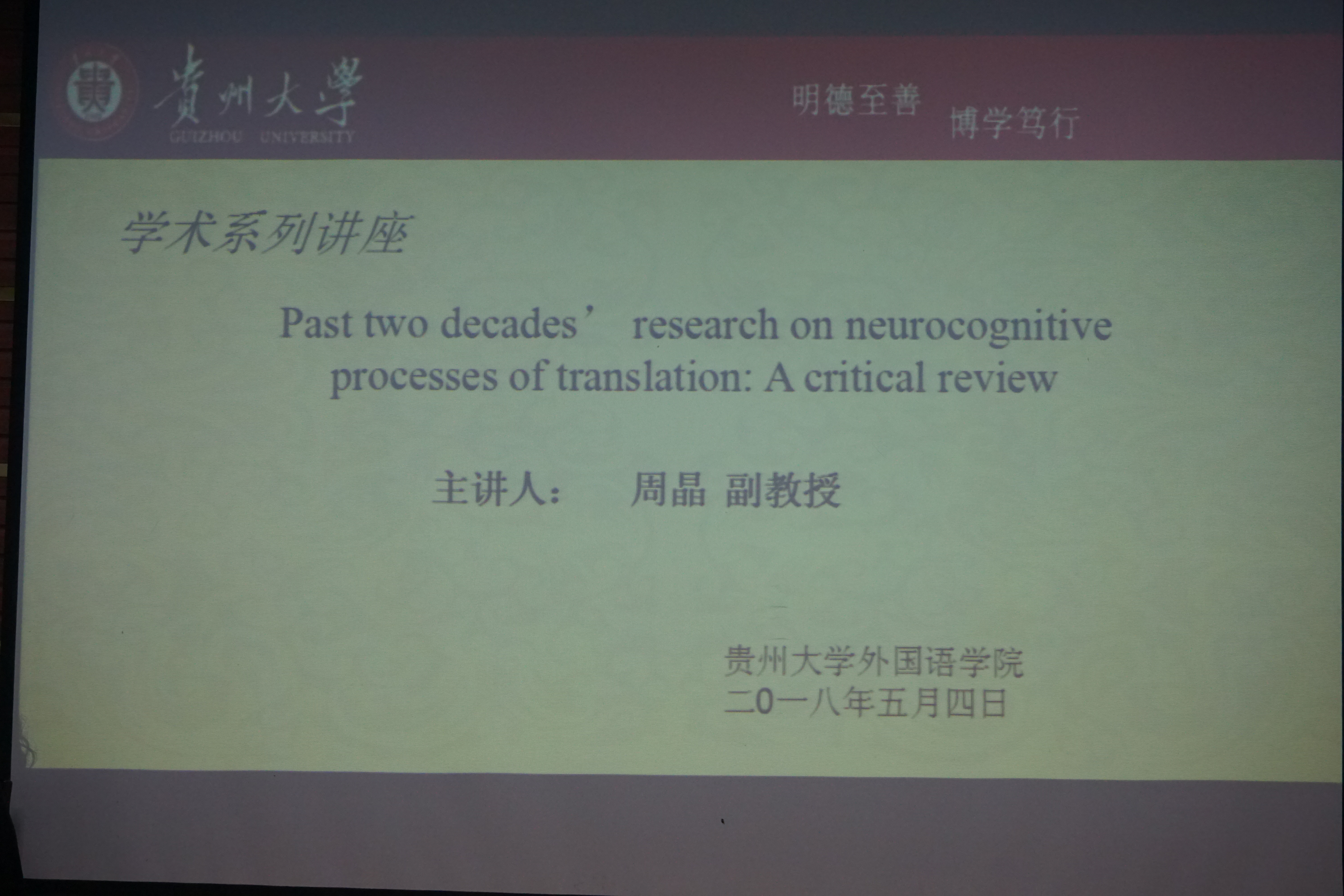 新蒲京娱乐场官网3245研究生科讯 2018年5月4日下午1:00,新蒲京官网特邀请电子科技大学新蒲京娱乐场官网3245翻译系副教授、硕士研究生导师、香港中文大学哲学博士周晶来新蒲京官网122学术报告厅作题为“Past two decades’ research on neurocognitive processes of translation: A critical review”的学术讲座。讲座由新蒲京娱乐场官网3245副院长王晓梅教授主持,新蒲京官网部分老师及研究生同学参加了此次讲座。