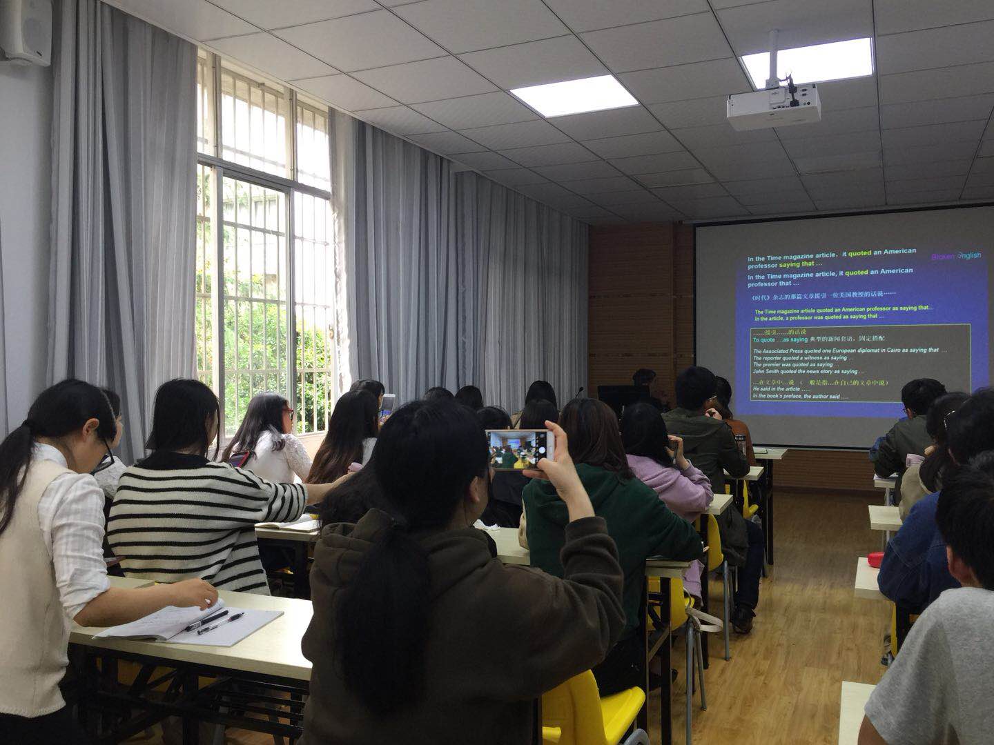 新蒲京娱乐场官网3245研究生科讯 2018年5月11日, 新蒲京官网特邀资深新闻工作者、新华社高级编辑、全国翻译系列高级职称评审委员会委员吴月辉主讲的翻译专业资格(水平)考试(CATTI)考前冲刺班在新蒲京官网225室顺利开班,周杰院长出席开班仪式、王晓敏副教授出席并主持了开班仪式。