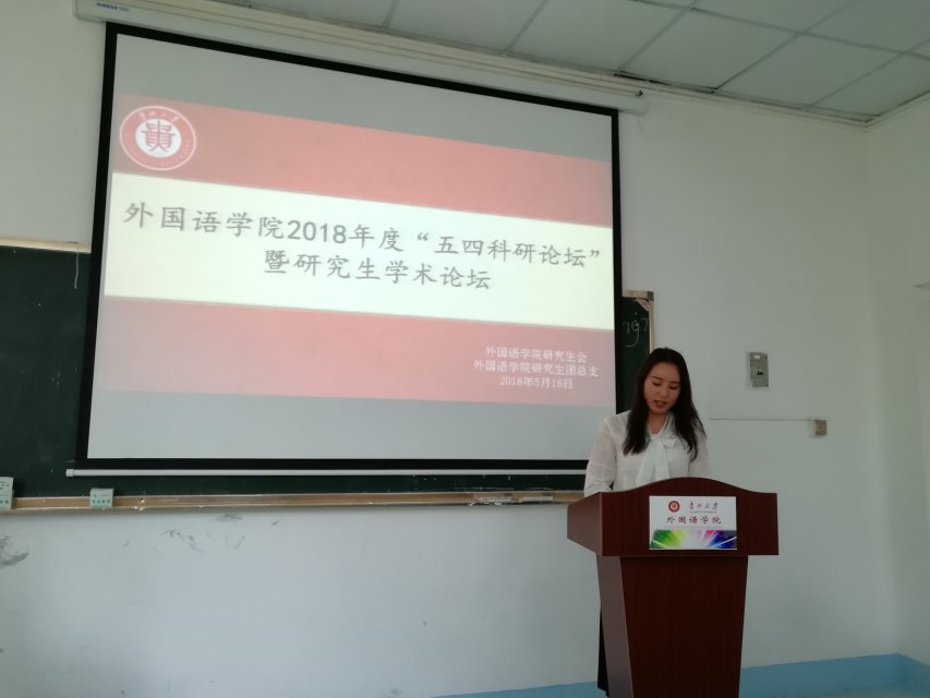 新蒲京娱乐场官网3245研会宣传部讯 新蒲京官网2018年“五四科研论坛暨研究生学术论坛”于5月16日在外语楼226报告厅拉开帷幕。此次论坛共分为外国语言文学组、英语笔译组、日语组、汉语国际教育组和教师组。本次五四论坛参与度较高,第一环节系列论坛由外国语言文学组、英语笔译组和日语组组成,共收到52篇学术论文,其中英语笔译类11篇,外国语言文学类23篇,日语类18篇,该环节的论坛从5月16日-5月23日;第二环节系列论坛有汉语国际教育组和教师组,将在6月份举行。