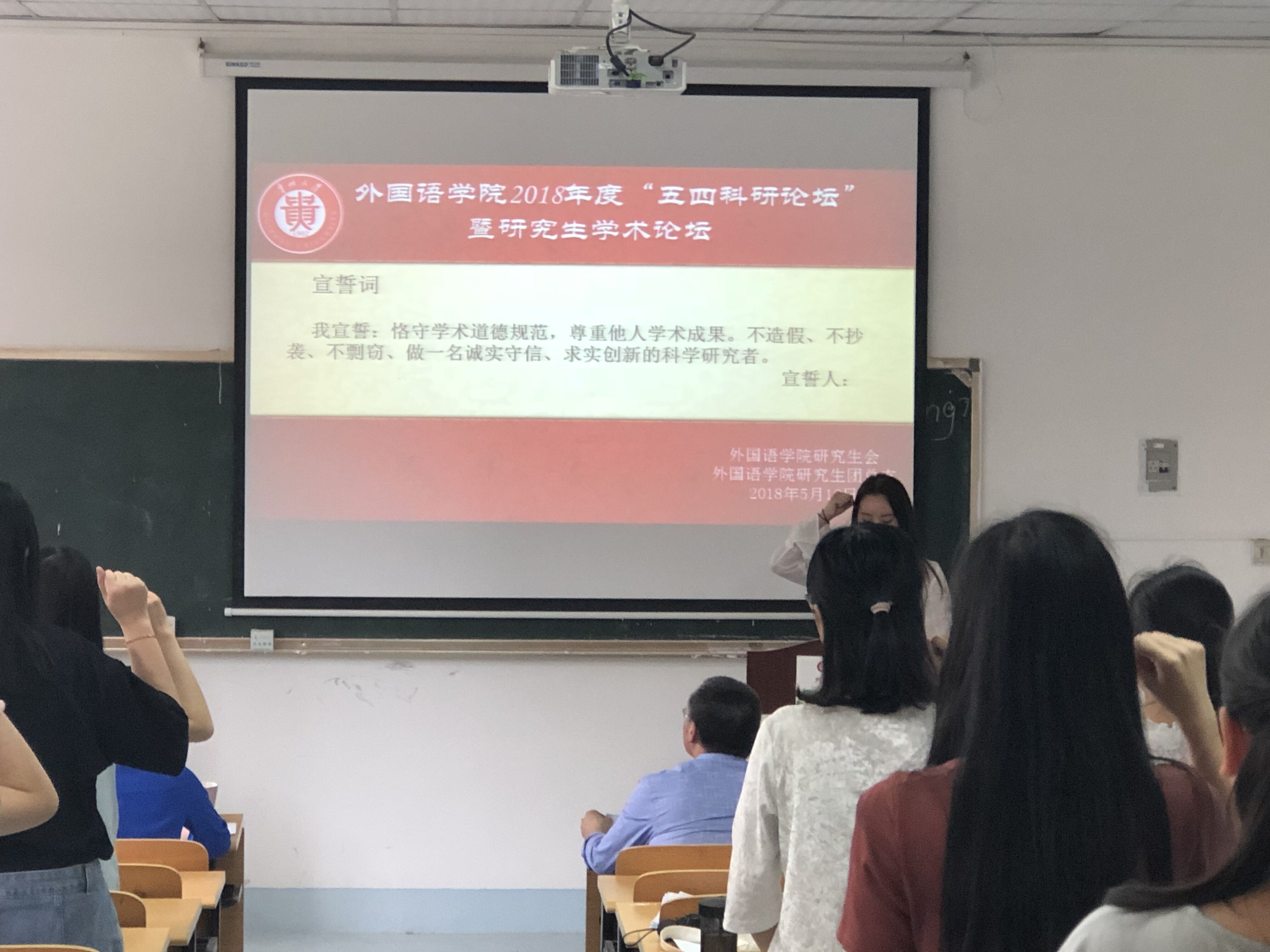 接着,由主持人带领参会的研究生们进行学术诚信宣誓,承诺要恪守学术道德规范,尊重他人学术成果;做一名诚实守信、求实创新的科学研究者。在庄严和郑重的学术氛围中,新蒲京娱乐场官网32452018年度“五四科研论坛暨研究生学术论坛”正式开始。