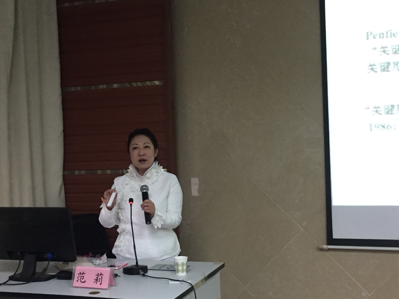 讲座主要从如何确定选题、拟定标题、查询文献、设计框架以及回复编审意见六个方面来进行阐述。范老师用朴实的语言描述了许多教师对于平衡生活与工作关系的困惑,提出“生活、教学、科研联动”,由小见大,在生活中发现自己的研究方向。她以自己与女儿相处的经历作为例子,从观察孩子说话的过程里研究母语习得中儿童语言的发展。她说到:“不要总学别人做什么,而要利用自己的优势做别人做不了的东西;敏锐地感知一切蕴藏在生活中的有效信息,寓研于乐。”
