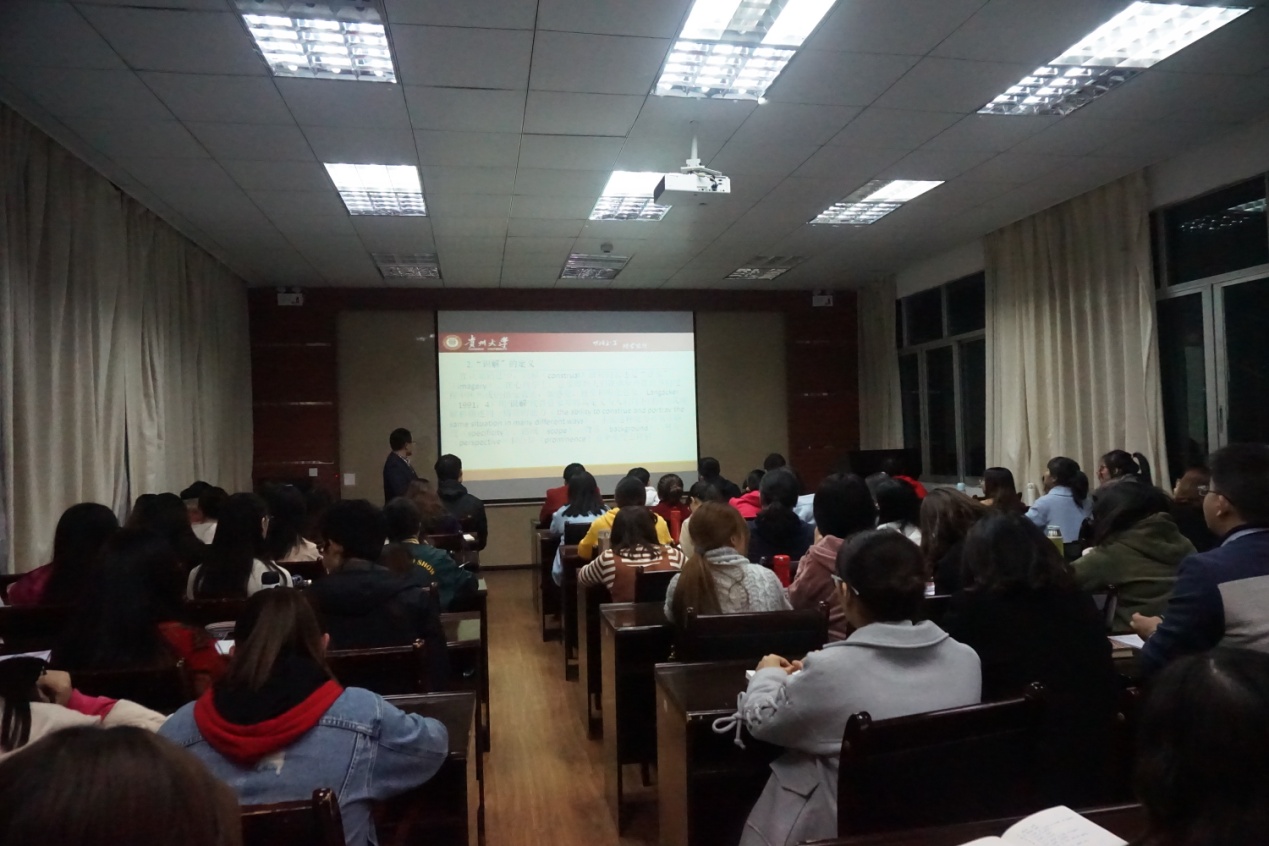 为促进新蒲京官网广大教师的学术研究水平、科学研究能力和教学技能的提高,本着“互相学习、共同发展”的原则,10月16日下午7点,新蒲京娱乐场官网3245举办2018年“教师论坛”第3期(总第26期),特邀新蒲京娱乐场官网3245麻金星老师作题为“识解理论观照下的英译研究及其启示”的学术报告。论坛由副院长宁梅教授主持,来自各年级的研究生参加了本次讲座。