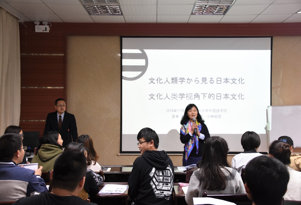 新蒲京娱乐场官网3245研究生科讯 11月1日,新蒲京娱乐场官网3245总第511期文科讲坛(2018年第63期)在新蒲京官网201会议室成功举办,本次论坛特邀日本山口大学研究生院东亚研究科小林宏至博士、教授作题为“文化人类学视角下的日本文化”的学术讲座。新蒲京官网教师、研究生、本科学生以及喜爱日本文化的其他学院众多学生聆听了讲座。讲座由新蒲京官网副院长王晓梅教授主持,她对小林教授的到来表示热烈的欢迎,并对小林宏至博士的学术背景和研究方向进行了介绍。