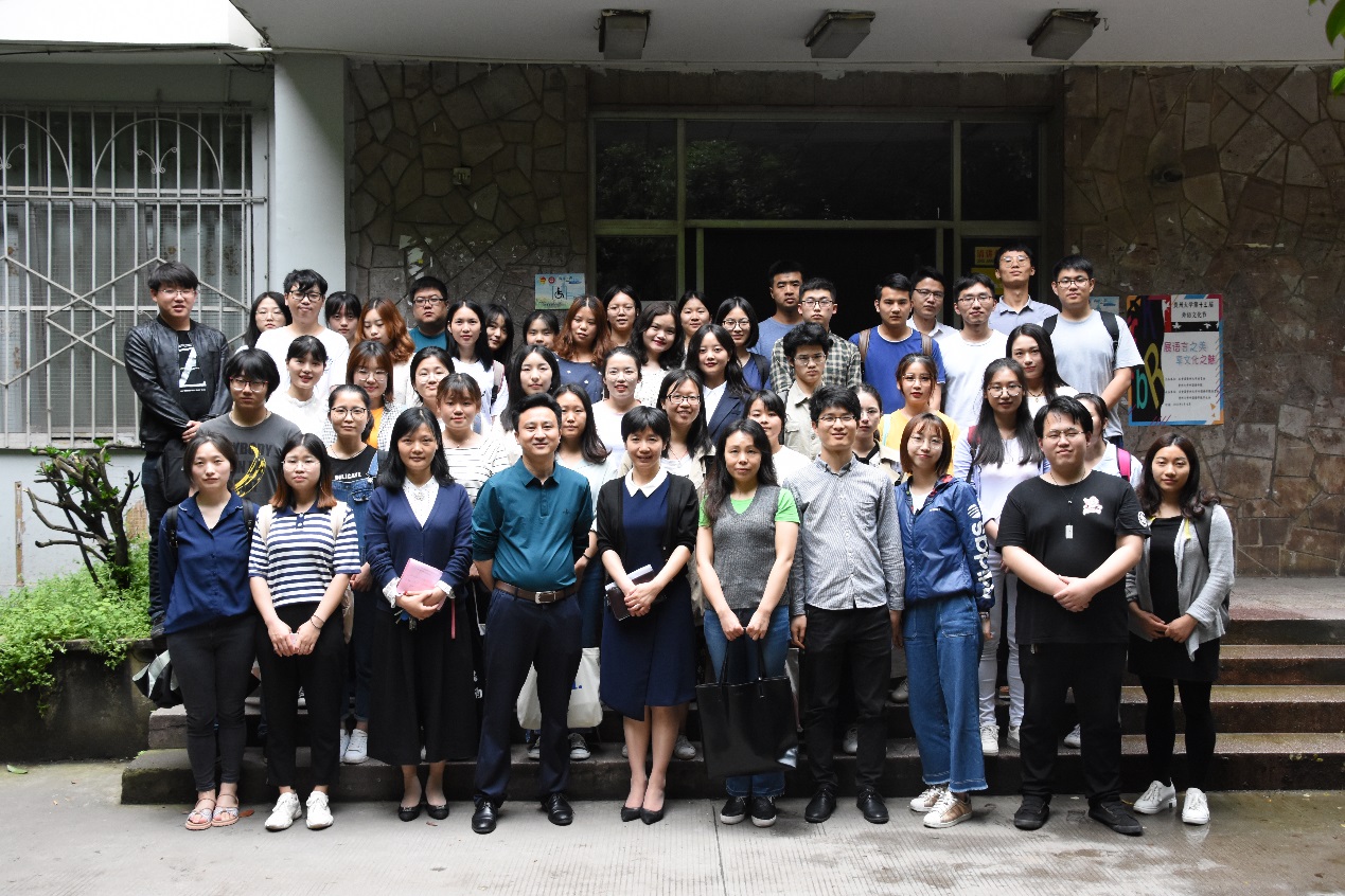 开幕式结束后,罗勇、周杰、王晓梅等领导同参加开幕式的师生们在外语楼门前合影留念。