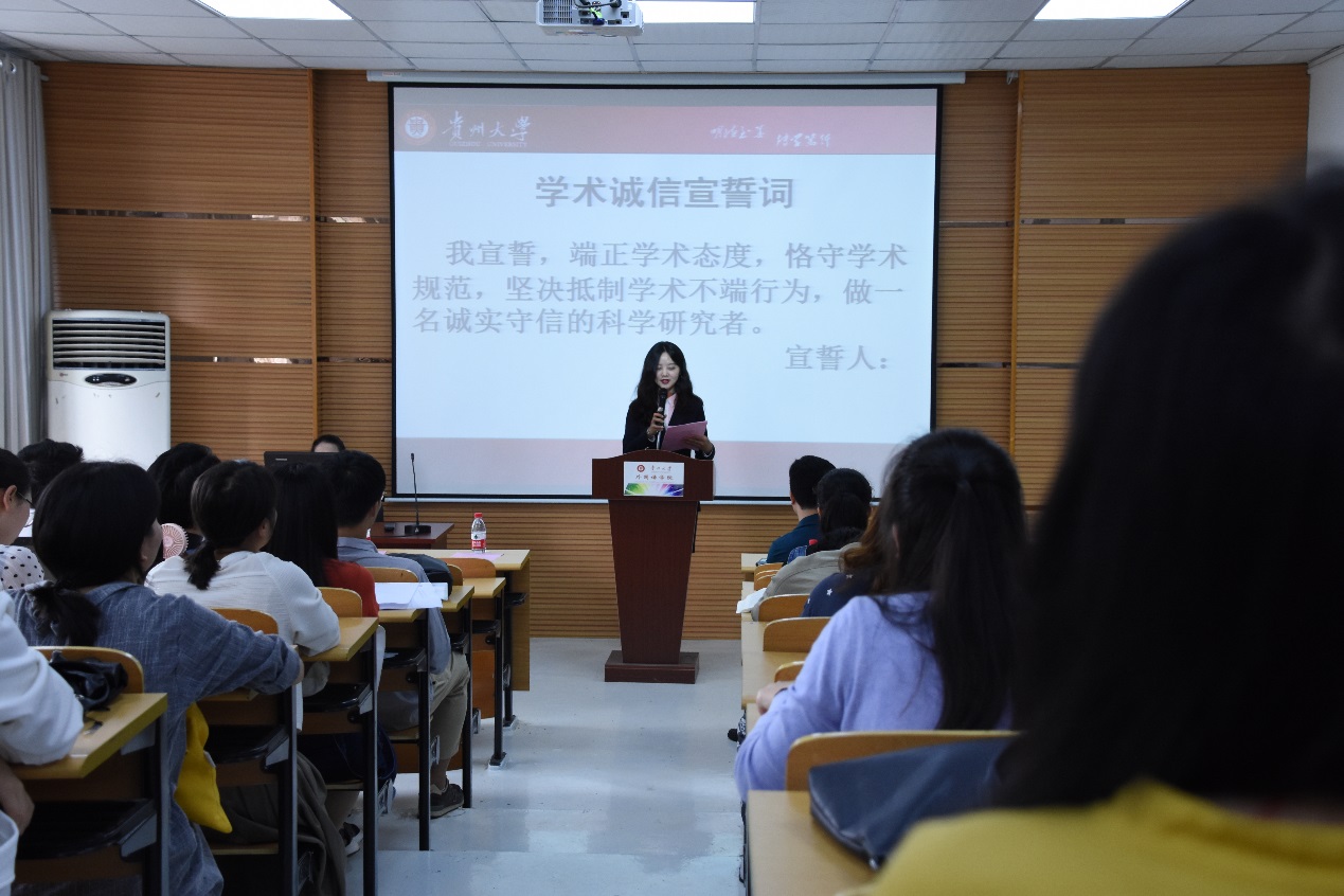 紧接着,在主持人的带领下,全体参会研究生进行了庄严的学术诚信宣誓。