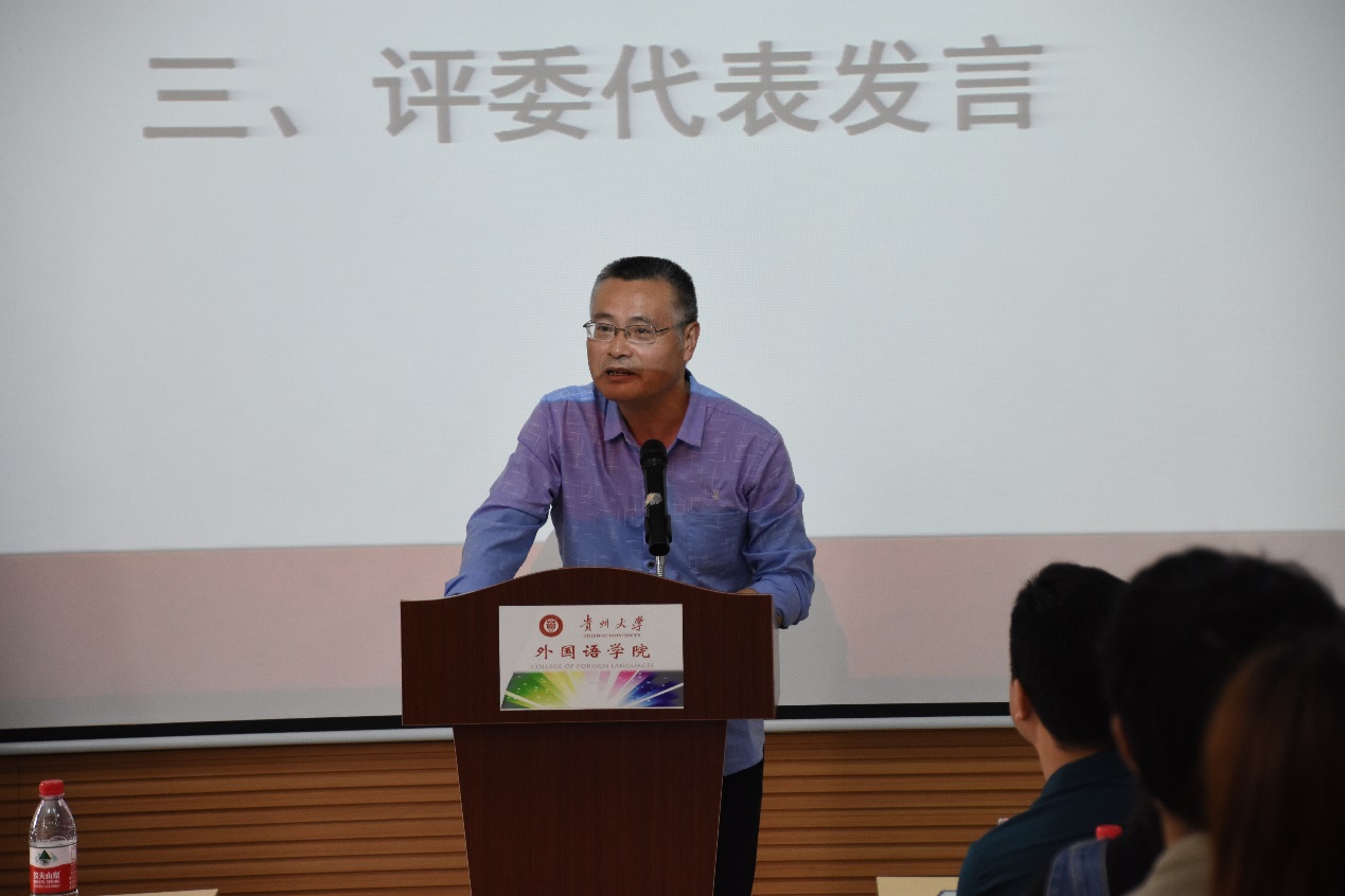 接着,外国语言学及应用语言学硕士点主任曾贤模代表本次论坛的全体评委老师做出承诺,一定会秉承严谨的学术精神认真审阅参会论文,给予客观公正的评选结果。