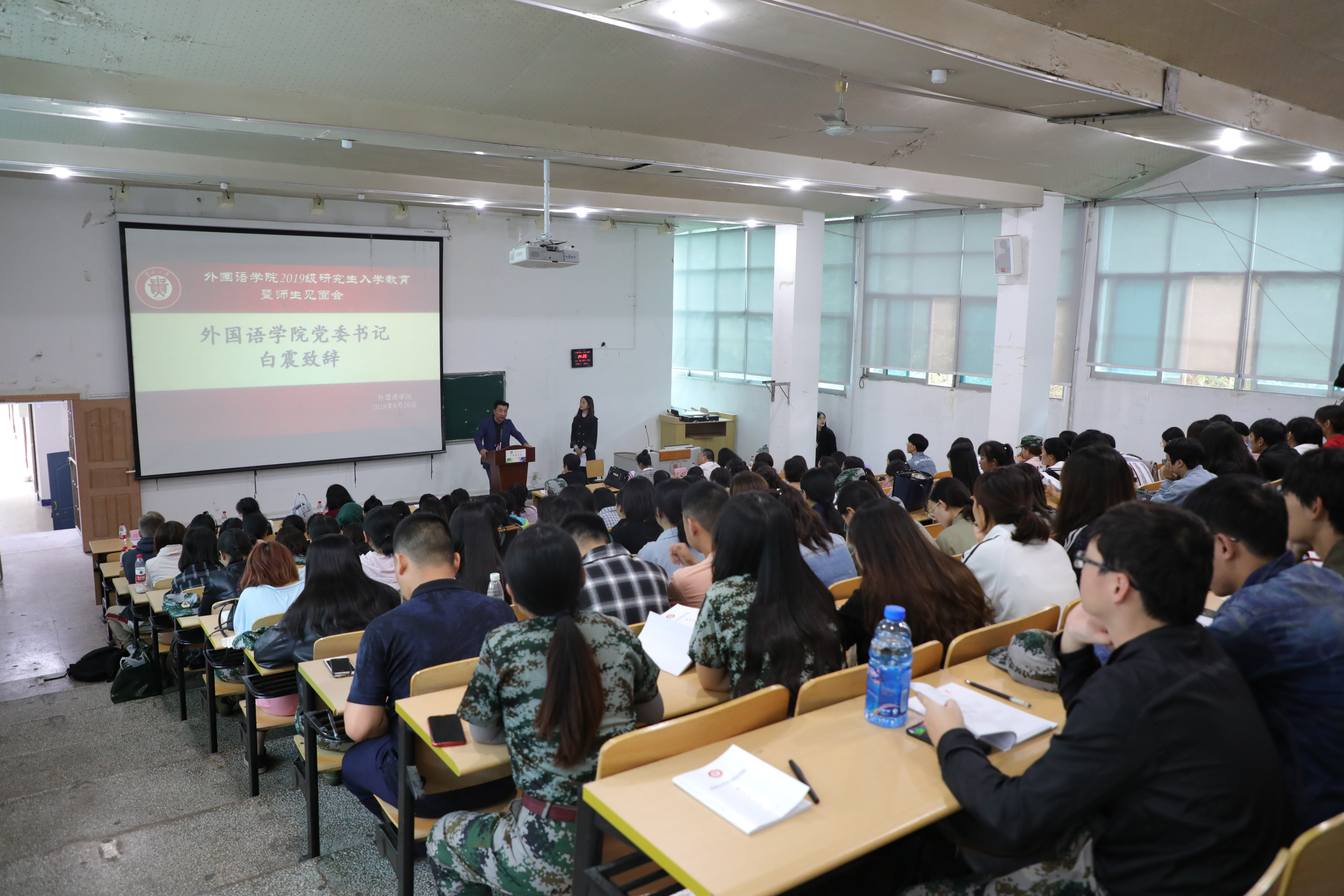 新蒲京娱乐场官网3245研究生科讯 920日下午两点整,在新蒲京娱乐场官网3245外阶二教室里,101位天南海北的2019级研究生新生以及来自法国、泰国、老挝等8个国家的10个留学生们正襟危坐,翘首以盼外院领导和老师们的到来。