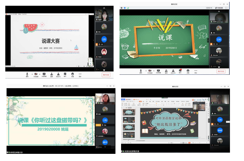 新蒲京娱乐场官网3245汉语国际教育硕士点的“说课大赛”历经五年时间的精心打造,成为硕士点的一个精品项目,不仅提高了同学们的课堂教学实践能力,也有效检测了汉语国际教育硕士研究生的综合素质和业务能力。今年虽然大家隔着屏幕,同学们却用别样的说课展现了同样的精彩,也留下了难以忘记的“云合影”。相信在学院的大力支持和指导下,汉语国际教育硕士点的说课大赛必定会厚积薄发,风景这边独好!