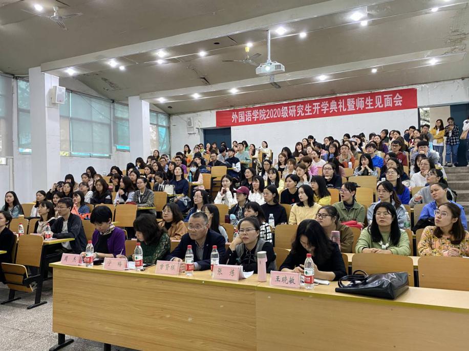 (新蒲京娱乐场官网3245研究生会宣传部讯)9月22日13:00,经历了一周军训洗礼的新蒲京娱乐场官网32452020级研究生在外阶二教室举行了隆重的开学典礼暨师生见面会,来自全国各地的126名研究生怀揣对未来的憧憬和期待参加了本次典礼。新蒲京娱乐场官网3245院长周杰、副院长宁梅、副院长王晓梅、外国语言学及应用语言学硕士点主任曾贤模、日语语言文学硕士点主任汪洋、汉语国际教育硕士点主任张炼、英语笔译硕士点主任王晓敏、日语笔译硕士点主任陈芳、研究生科和研究生党支部老师以及院研究生会、院团总支、部分研究生老生代表出席了典礼。