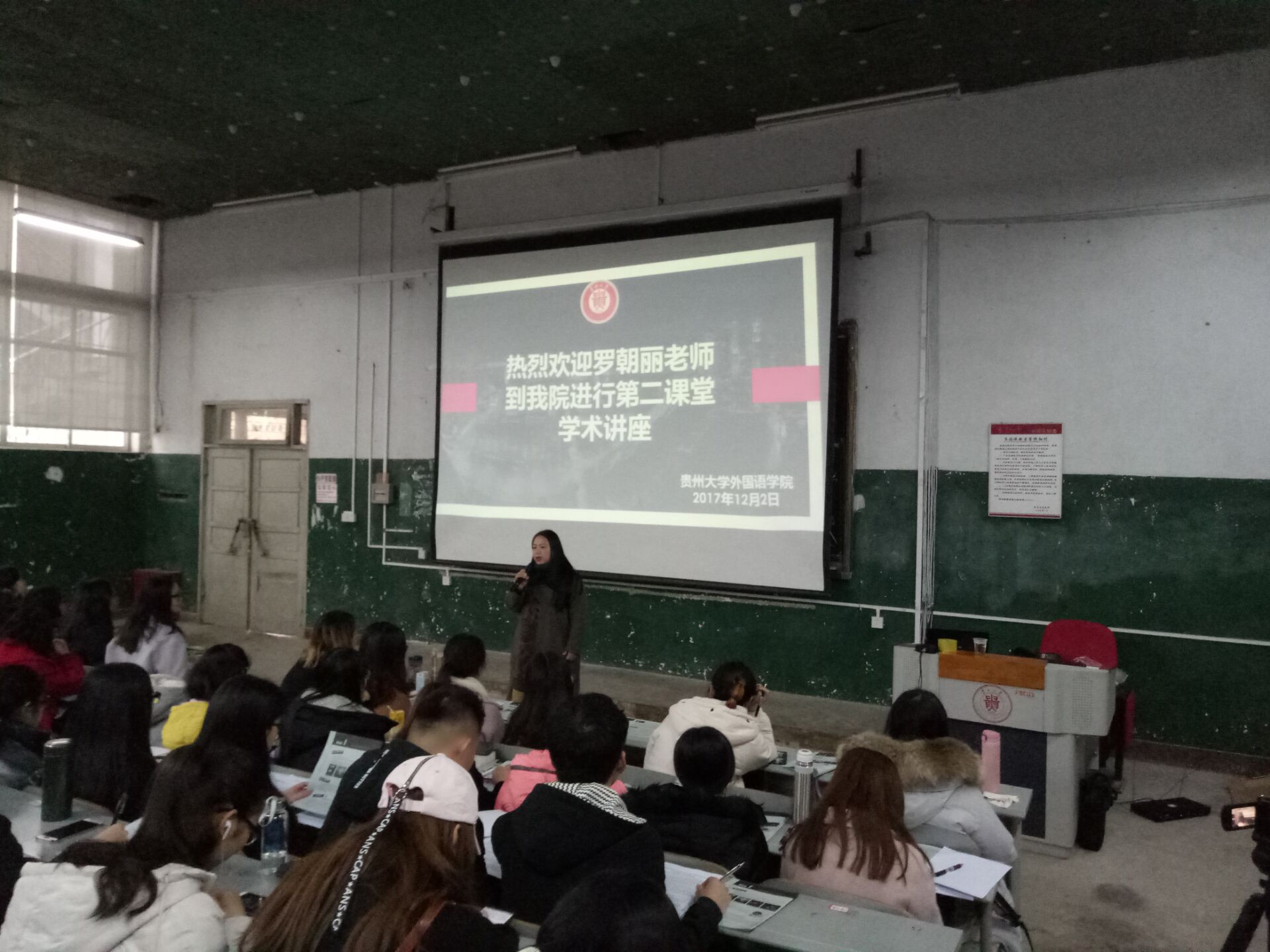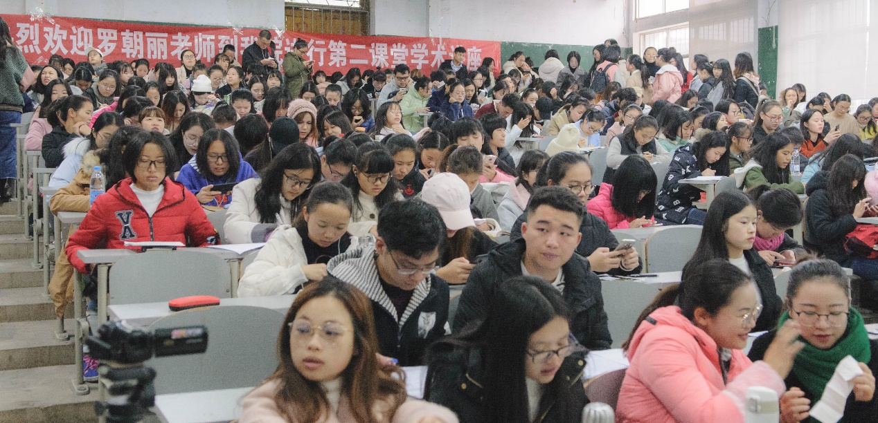 2017年12月2日上午,新蒲京娱乐场官网3245教学科邀请到北京师范大学贵阳附中英语高级教师罗朝丽老师来为新蒲京官网学生进行第二课堂学术讲座,教学科科长李蓉老师和400多名同学共同参加了讲座。