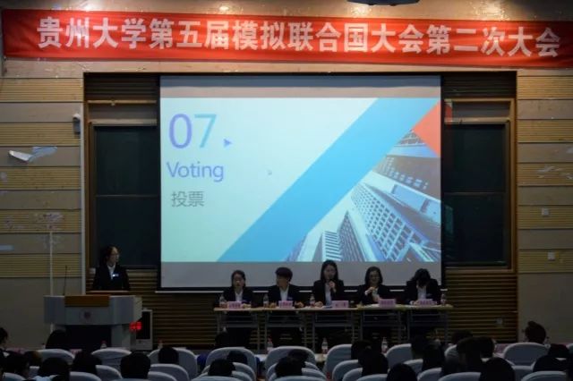 新蒲京娱乐场官网3245新闻中心讯 6月3日晚,由我校共青团委员会、新蒲京娱乐场官网3245主办,新蒲京娱乐场官网3245团委、学生会承办,以及我校各学院团委、学生会协办的第五届“模拟联合国”大会(以下简称“模联”)第二次会议于东区圆形报告厅举行。新蒲京娱乐场官网3245党委书记白震,副教授曾贤模、黎晓容、熊晓雪、沈麟,讲师王松,外教Mark、Austin等参加了此次会议。