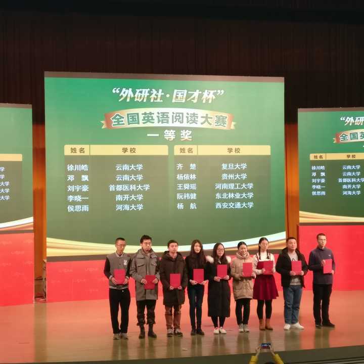 在此前的2018年“外研社杯” 演讲大赛、阅读大赛及写作大赛贵州赛区决赛中,我校学子也取得了非常优异的成绩。其中,在英语演讲比赛中,新蒲京娱乐场官网32452018级研究生杨小平和徐岳同学获特等奖、阳明学院2018级刘洋华同学获二等奖;在英语写作比赛中,管理学院2016级徐淼同学和阳明学院2018级高双赢同学获一等奖,新蒲京娱乐场官网32452018级张亮星同学获二等奖,管理学院2016级王烨同学获得三等奖;在英语阅读比赛中,新蒲京娱乐场官网32452016级杨依林同学获特等奖、新蒲京娱乐场官网32452017级胡佩家和计算机科学院2016级胡尧同学获一等奖、城市规划学院徐浩添同学获二等奖。