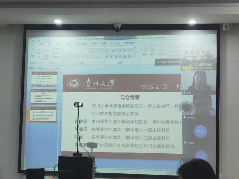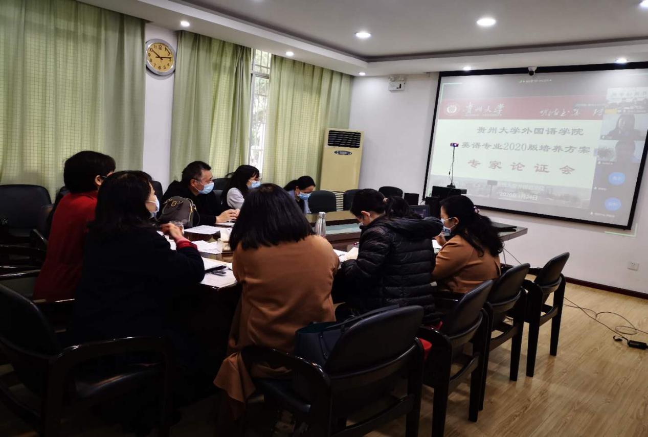 首先,教学例会进行了2020版专业培养方案的专家论证会。由于疫情影响,本次论证会采取了线上、线下结合的形式。学院有幸邀请到四川大学新蒲京娱乐场官网3245副院长、博士生导师、教育部英语专业教学指导委员会委员王欣、贵州民族大学新蒲京娱乐场官网3245院长肖唐金、省外事办礼宾处(翻译室)一级主任科员胡瑜珏、省外事办礼宾处(翻译室)三级主任科员刘怡、贵阳中国旅行社有限责任公司门控部副经理黄锴毅等学科专家及行业专家对培养方案进行了论证。
