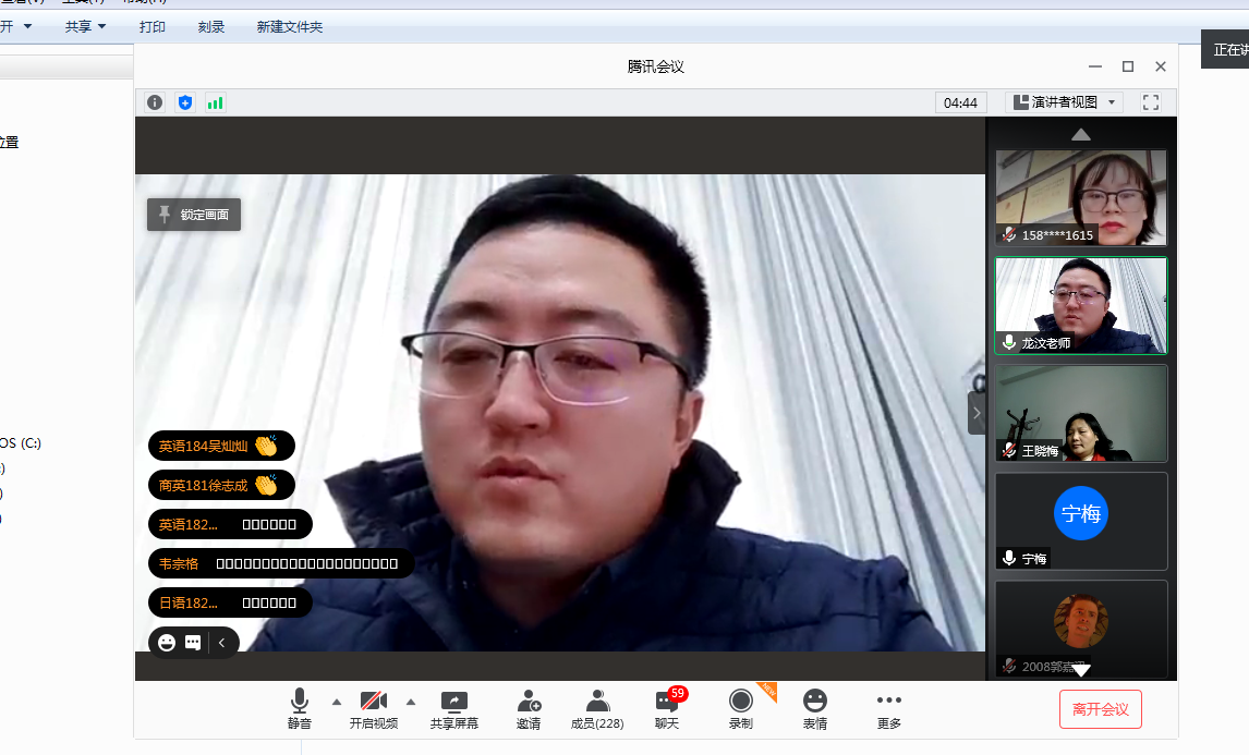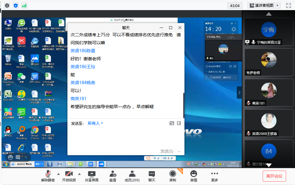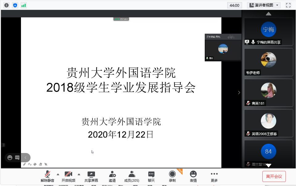 12月22日中午,新蒲京官网2018级学生学业发展指导会议顺利召开,因天气特别寒冷,为了关照学生,本次会议采用线上方式进行。新蒲京娱乐场官网3245党委书记龙汶、院长周杰、副院长宁梅、副院长王晓梅出席会议,2018级全体学生参加会议,会议由学生科副科长韦伊主持。