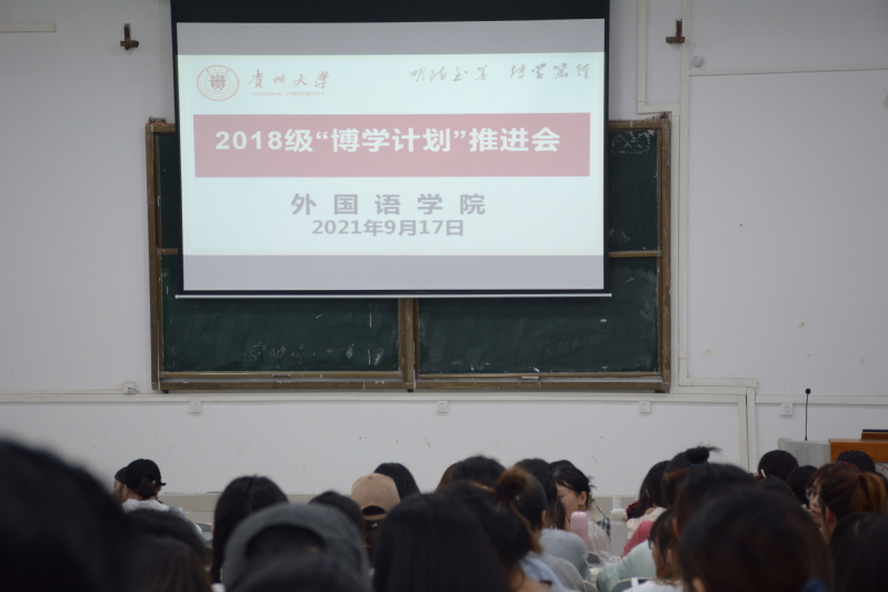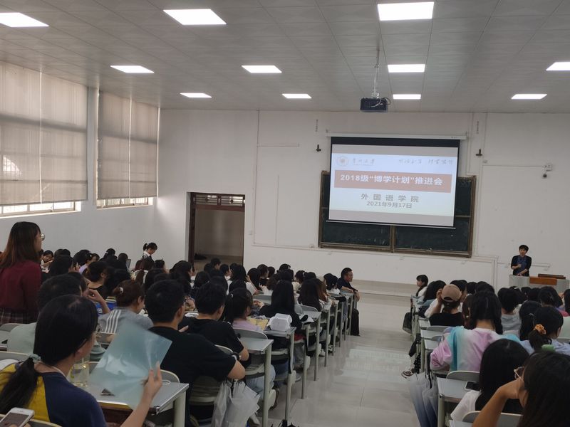 2021年9月17日中午,新蒲京娱乐场官网32452018级“博学计划”推进会在东校区法阶三教室顺利召开。新蒲京娱乐场官网3245院长周杰、副院长宁梅、副院长王晓梅出席会议,英语系系主任曾贤模、英语系副主任彭启英、翻译系主任聂晓霞、日语系主任文莹、2018级全体班主任、全体本科生及2021级新蒲京娱乐场官网3245研究生代表(原新蒲京娱乐场官网32452017级本科生)参加会议。会议由学生科韦伊老师主持。