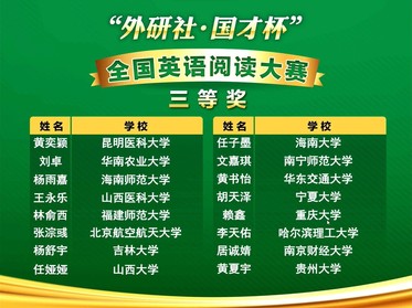 据悉,“外研社·国才杯”全国英语演讲、写作及阅读大赛分别于2002年、2012年及2015年创办,由外语教学与研究出版社、北京外研在线数字科技有限公司和中国外语测评中心主办。在国内外广受关注,已成为全国参赛人数最多、规模最大、水平最高的英语学科赛事之一。2019年该赛事以其科学严谨的赛制设计、专业严格的评判标准获得专家们的一致认可,作为唯一的英语类竞赛入选教育部高等教育学会发布的“中国高校创新人才培养暨学科竞赛排行榜“。