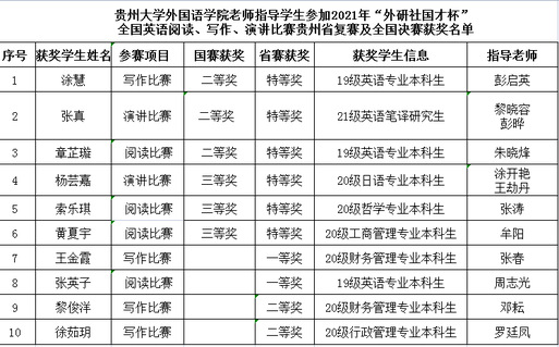 附:新蒲京官网教师指导学生参加2021“外研社·国才杯”全国英语演讲、写作、阅读大赛全国决赛及贵州省省级复赛获奖名单(含指导老师及学生)
